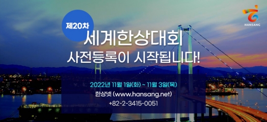 [동포투데이] 오는 11월 1일부터 3일까지 울산광역시 울산전시컨벤션센터(UECO)에서 열리는‘제20차 세계한상대회’ 사전등록이 시작됐다. 재외동포재단(이사장 김성곤)은 올해 대회 슬로건을 “위대한 한상 20년, 세계를 담다”로 확정하고, 8월 31일까지 사전등록 신청을 받는다고 밝혔다. 대회 사전등록은 ‘...- 재외동포
