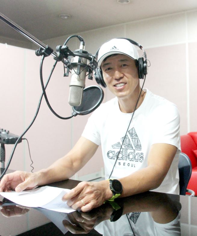 ▲이번 영상의 내레이션을 녹음중인 가수 션