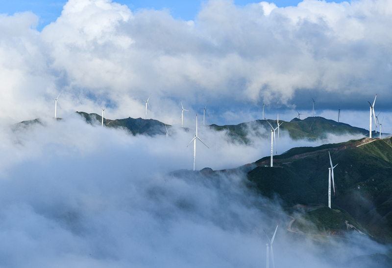 [동포투데이 김현나 기자] 중국 후난(湖南)성 천저우(郴州)시 구이양(桂阳)현 바이수이 요족(白水瑶族)향 톈탕(天塘山)산 풍력발전 지대는 운무가 자욱하고 수십 대의 풍력발전기가 하늘을 찌를 듯 솟아 있어 일대 장관을 이루면서도 그림처럼 아름답다.