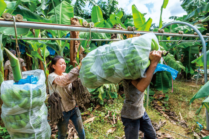 바나나가 풍년이 들자 농장 내에 임시 일자리 100여 개가 생기면서 마을 주민들의 일자리 수요를 충족시키고 소득을 효과적으로 증가시키는 것으로 알려졌다.(사진 : 인민망)